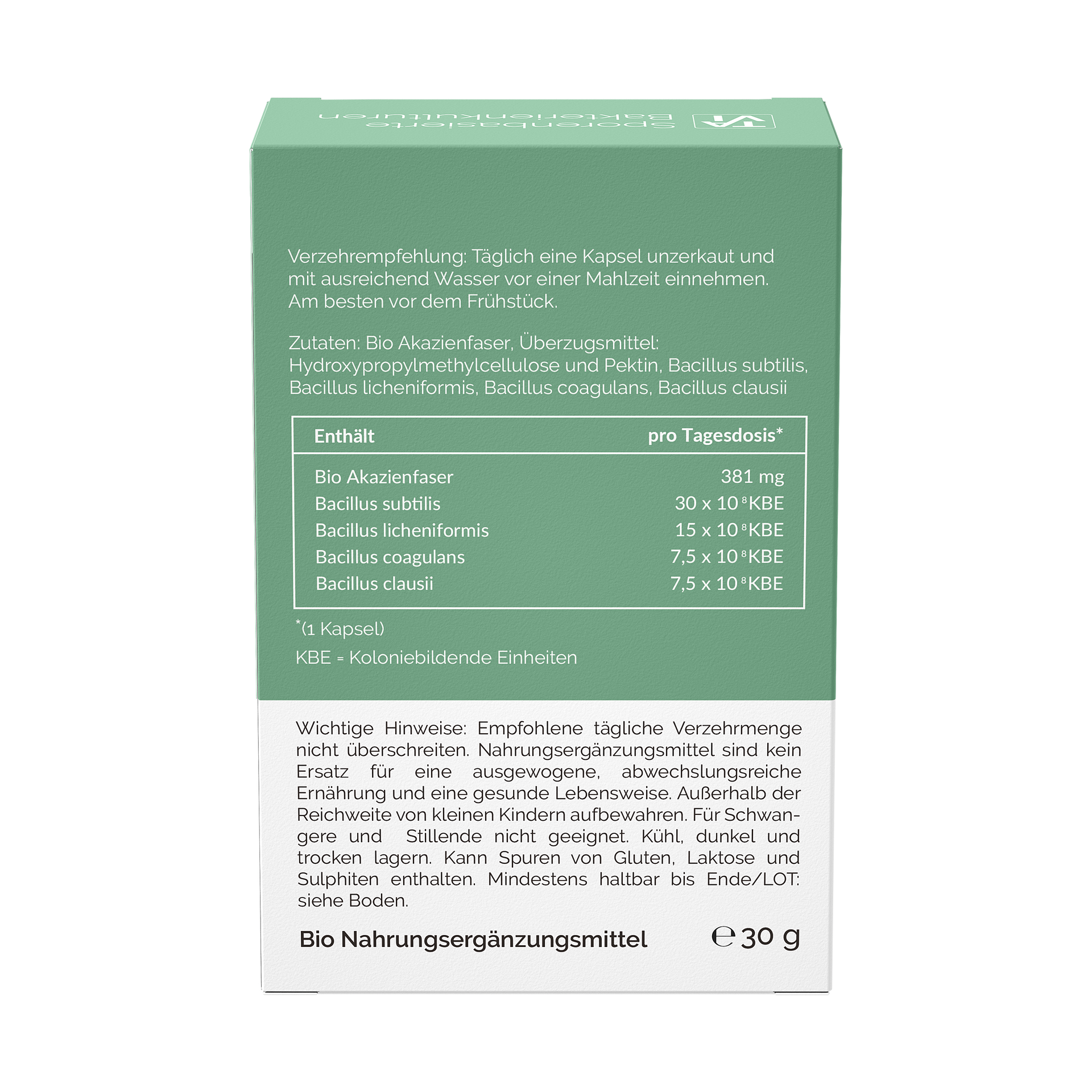 Jede Kapsel ist in einem schützenden Blister verpackt und damit vor Feuchtigkeit und anderen schädlichen Einflüssen geschützt. Mit Akazienfaser in Bio Qualität.